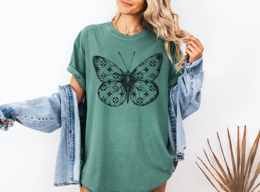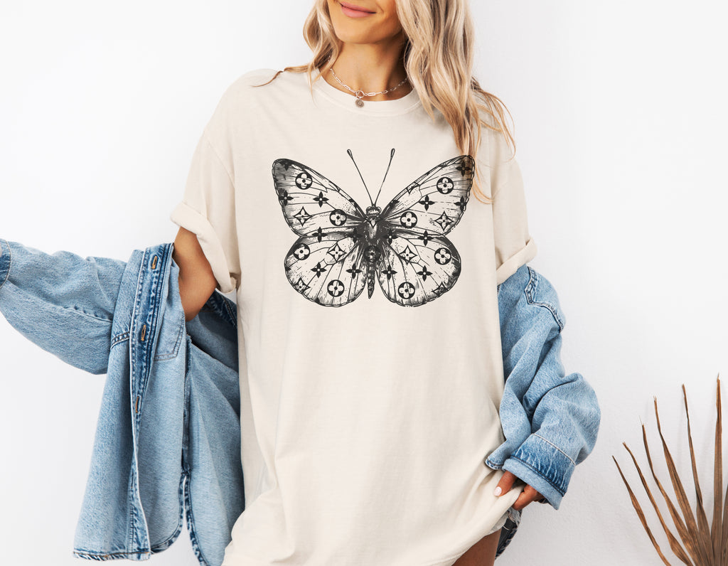 Butterfly iconic LV monogram pattern. STEEL DUST DESIGNS has you covered in our premium garment-dyed Comfort Colors brand for that lived-in feel and almost no shrinkage. Garment-dyed fabric will give your tees a unique, retro-inspired look and feel. Soft 100% ring spun U.S. cotton and 100% cotton threads. Relaxed fit tees and sweats that will feel like a well-loved favorite. Our trendy designs makes for a great staple t-shirt that will compliment any outfit.